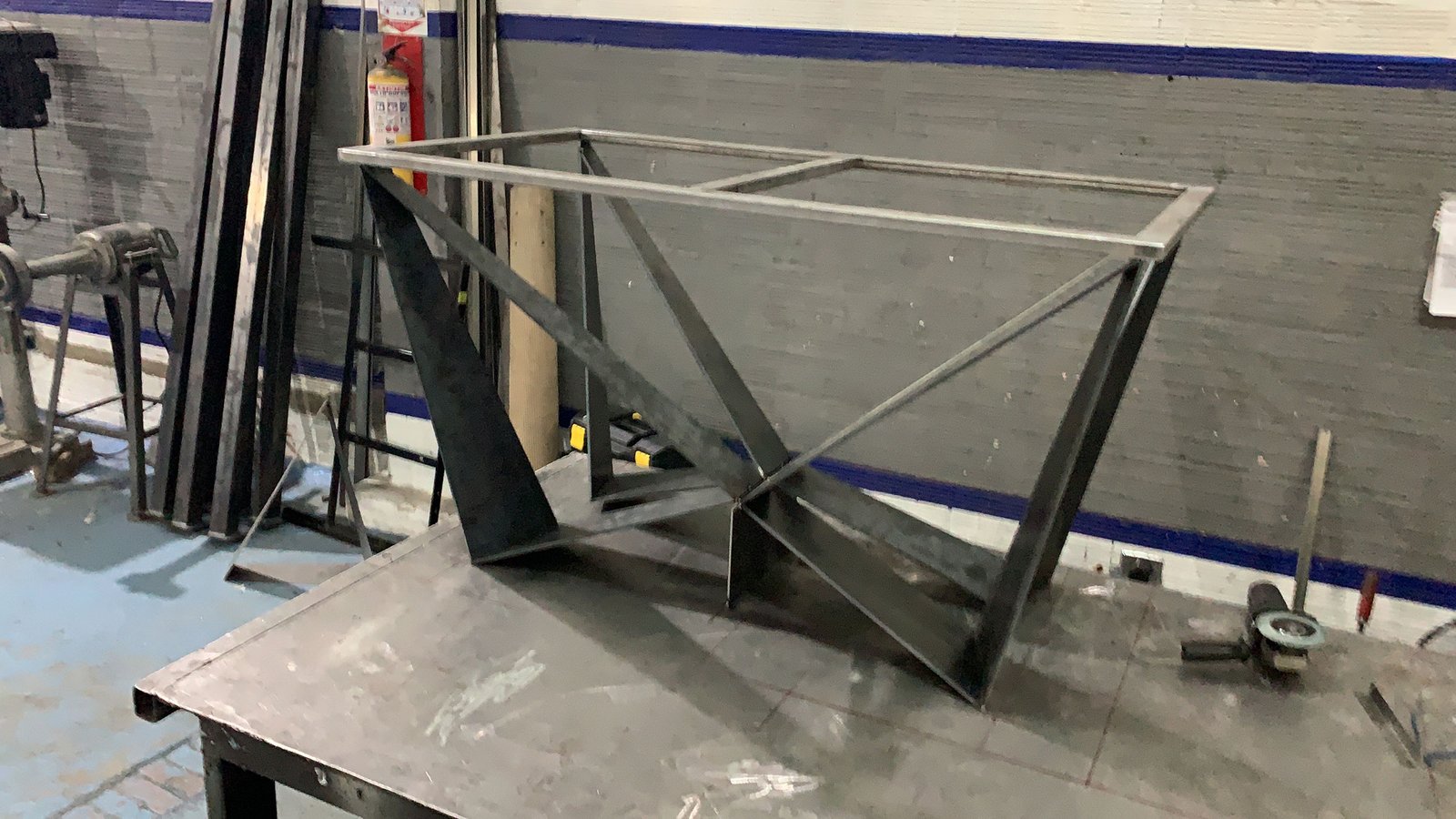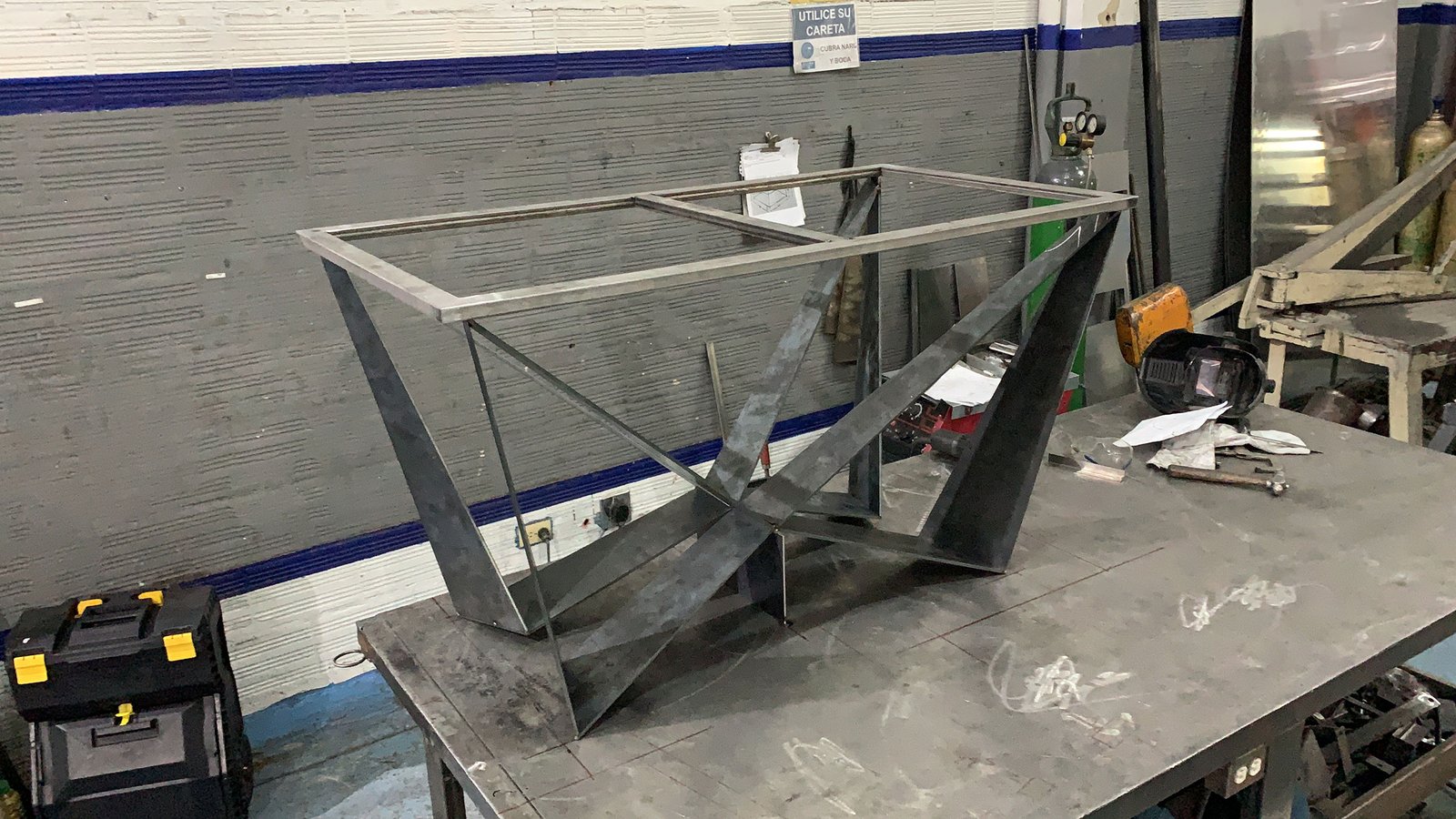 Utilizamos lámina HR calibre 1/4 cortada con tecnología láser de alta precisión, asegurando acabados impecables y ajustes exactos. La estructura principal se fabricó con tubo rectangular, seleccionado específicamente para garantizar un soporte robusto y confiable para la placa de mármol.
